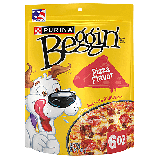 Unleash your dog's inner party animal with Purina Beggin' Pizza Flavor dog treats. Your dog is sure to flip for these chewy dog treats with the yummy aroma and irresistible flavor of a cheesy, bacony pizza slice. Watch his anticipation build as you open the dog treat pouch and he gets a whiff of these adult dog treats made with real bacon. With real meat as the first ingredient, these dog jerky treats indulge his love for big, bold flavor. As your pal expresses his uncontainable joy, you can delight in knowing we make these pizza-flavored dog treats with no artificial flavors or FD and C colors. Use these pet snacks for