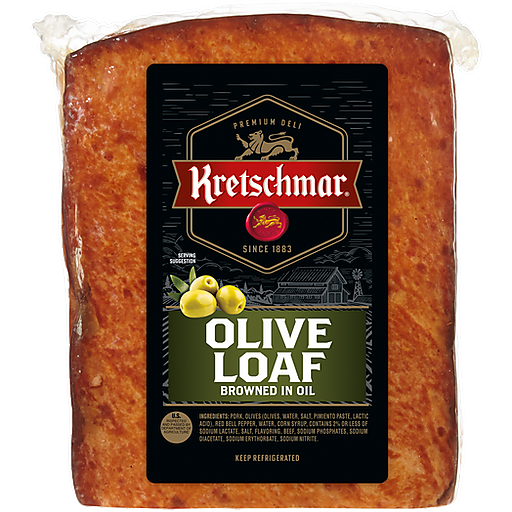 This snack-ready loaf is crafted from a fully cooked and seasoned pork and beef blend, and then loaded up with whole olives.