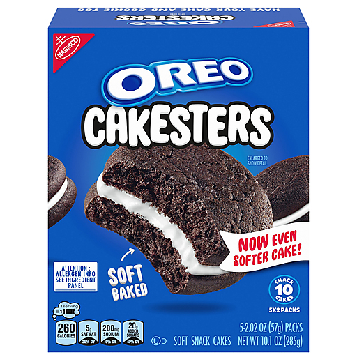OREO Cakesters Soft Snack Cakes are a delicious, soft-baked twist on a classic sweet treat. These OREO snack cakes sandwich creme filling between two chocolate cakes, making them tasty sweet snacks for all ages. Each snack pack of OREO Cakesters includes 2 soft snack cakes making them ideal for packing into adult lunches, serving as birthday treats, office snacks or after school snacks for kids and adults. These convenient snacks make a great addition to your grab-and-go snack treats. OREO Cakesters--the delicious twist on America’s Favorite OREO chocolate sandwich cookie taste!