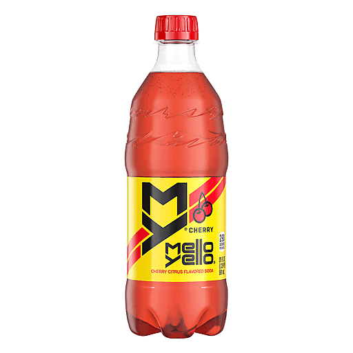 Cherry citrus flavored soda. 290 calories per bottle. Caffeine Content: 85 mg/20 fl oz. melloyello.com. Smartlabel: Scan for more food information. Sip & Scan: Open melloyello.com on phone. Scan icon. Enjoy more. Consumer information call 1-800-438-2653. Please recycle.