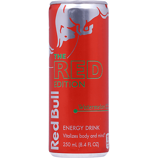 This Red Bull Red Edition features the ripe taste of Watermelon. This lightly carbonated beverage is enjoyed worldwide by fitness enthusiasts, athletes, gamers, students and travelers. A refreshing can of Red Bull makes an excellent partner for busy, active lifestyles. Each 8.4 fl oz can contains 80mg of caffeine per serving (about the same amount as a home-brewed cup of coffee) and 27g of sugar (comparable to sugar levels found in apple juice). It also includes Taurine, an amino acid naturally occurring in the human body, and B-group vitamins B6, B12, Niacin (B3) and Pantothenic Acid (B5). Available in 4-packs, 12-packs, 24-packs and Variety Packs. Comes in aluminum cans that can be recycled over and over. Always check can labels for most updated product nutritional and ingredient information. Calcium and sugars values declared on labels may vary slightly depending on production locations.