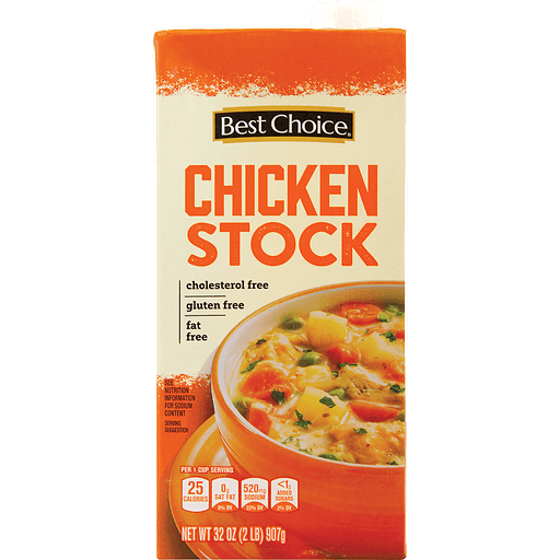 Per 1 Cup Serving: 20 calories; 0 g sat fat (0% DV); 520 mg sodium (23% DV); 1 g total sugars. A fat free food. See nutrition information for sodium content. For perfectly flavored meals. Always start with best choice! Best Choice 100% guaranteed. www.bestchoicebrand.com. Tetra Pak. Protects What's Good. Tetra Pak Tetra Brik Aseptic. Recyclable only where facilities exist. Visit recyclecartons.com to see if recyclable in your area. Product of Canada.