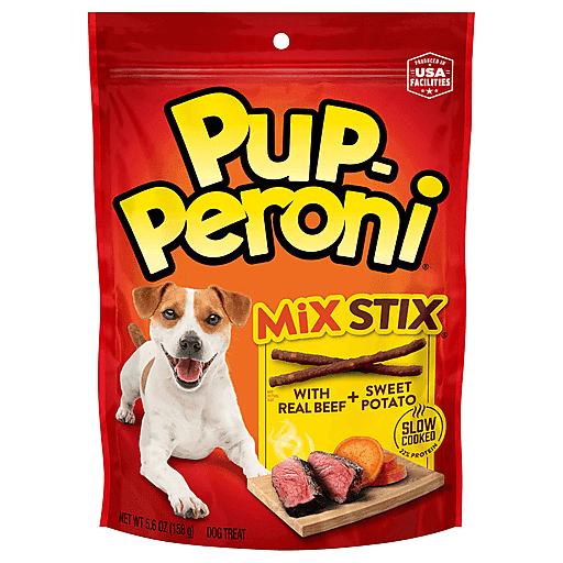 Mix things up at treat time and toss your pup a Pup-Peroni Mix Stix dog treat with real beef and sweet potato. Real beef is the number one ingredient, so your dog gets high-quality protein in every bite. And if that’s not enough to excite ’em — each treat is slow cooked for at least 2.5 hours, which helps retain moisture and intensifies the taste and aroma. The result? An irresistibly rich, meaty treat with a soft, tender texture dogs can sink their teeth into. It’s everything your dog wants in a treat … and nothing you don’t. No fillers. No Red 40. Just the crazy-good dog snacks your pup craves. Grab a bag today and Unleash the Delicious Meaty Taste!