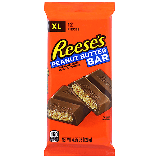 Pass around the creamy flavor of chocolate candy filled with REESE'S peanut butter creme in the form of delicious XL candy bars! With an extra large bar that can easily be broken into 12 individual pieces, you can share these just-because treats with your co-workers, teammates, friends, classmates and anyone else close by. They're perfect for breaking apart so that everyone can get a taste of this delicious candy. With a few bars stocked in your pantry, grab some for your next camping trip to make a unique s'more or eat them straight out of the wrappers around the campfire. REESE'S chocolate peanut butter creme XL candy bars are also great for adding to gift baskets and party favor bags. And as the holidays roll around throughout the year, these chocolate bars make fun Valentine's Day sweets, Easter basket stuffers and tasty baking ingredients during Halloween or Christmas! Break off sections of this candy bar and use pieces to top cookies, cupcakes and brownies. Individually wrapped in the iconic orange wrappers, REESE'S candy bars are kosher certified and ready for any party, gathering, celebration or special moment spent on your own. Just don't forget to save a few pieces for yourself during all that sharing!