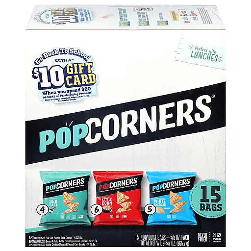 Pop Corners Sea Salt/Kettle Corn/White Cheddar Popped Corn Snacks 15 ea