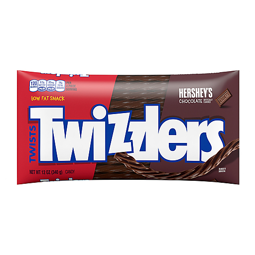 There's no party like a TWIZZLERS candy party! Seriously though, TWIZZLERS Twists HERSHEY'S chocolate flavored chewy candies are too fun not to enjoy with family and friends at every movie marathon, birthday party and tailgate. With a bag of chocolate flavored chewy candies ready for action, you'll never find yourself without a delicious, shareable snack. Bite both ends of a TWIZZLERS Twists candy off to create a straw, then dip your straw into a cold glass of milk, a steaming hot chocolate or a frothy milkshake. If you're more into eating a couple of these chewy treats on their own, you'll be ready to go the second you open the bag. Keep your pantry stocked with kosher certified, low fat TWIZZLERS Twists candies, store some in your work desk, take a bag on a road trip or bring a pack to your next party gathering. Looking for an even greater adventure? For a unique twist, melt several white creme or milk chocolate bars, dip your TWIZZLERS candies in the melted gooeyness, then cover each piece in sprinkles and let the new treats cool! They even make scrumptious holiday treats as Christmas stocking stuffers, Halloween trick-or-treat candy, Easter basket fillers and Valentine's Day presents.